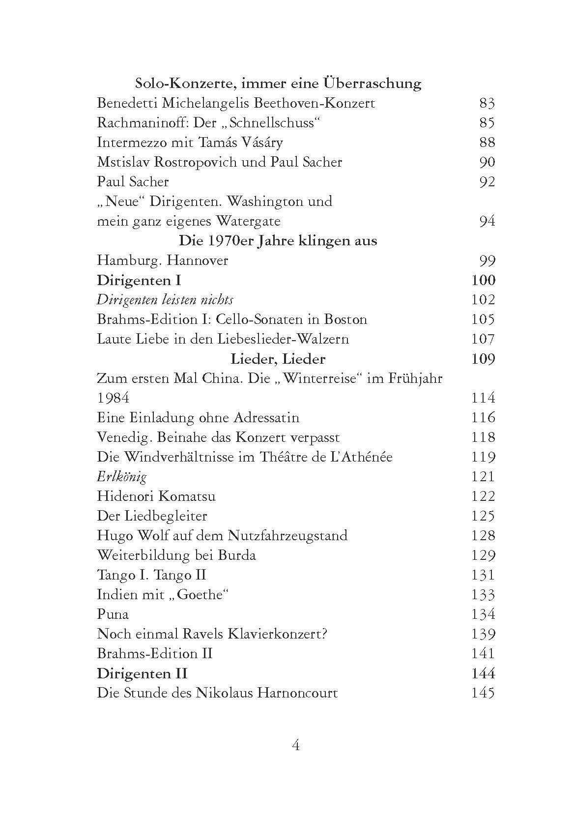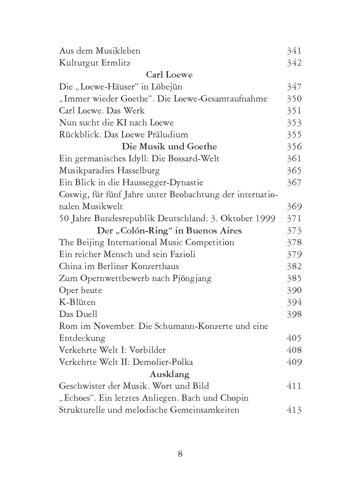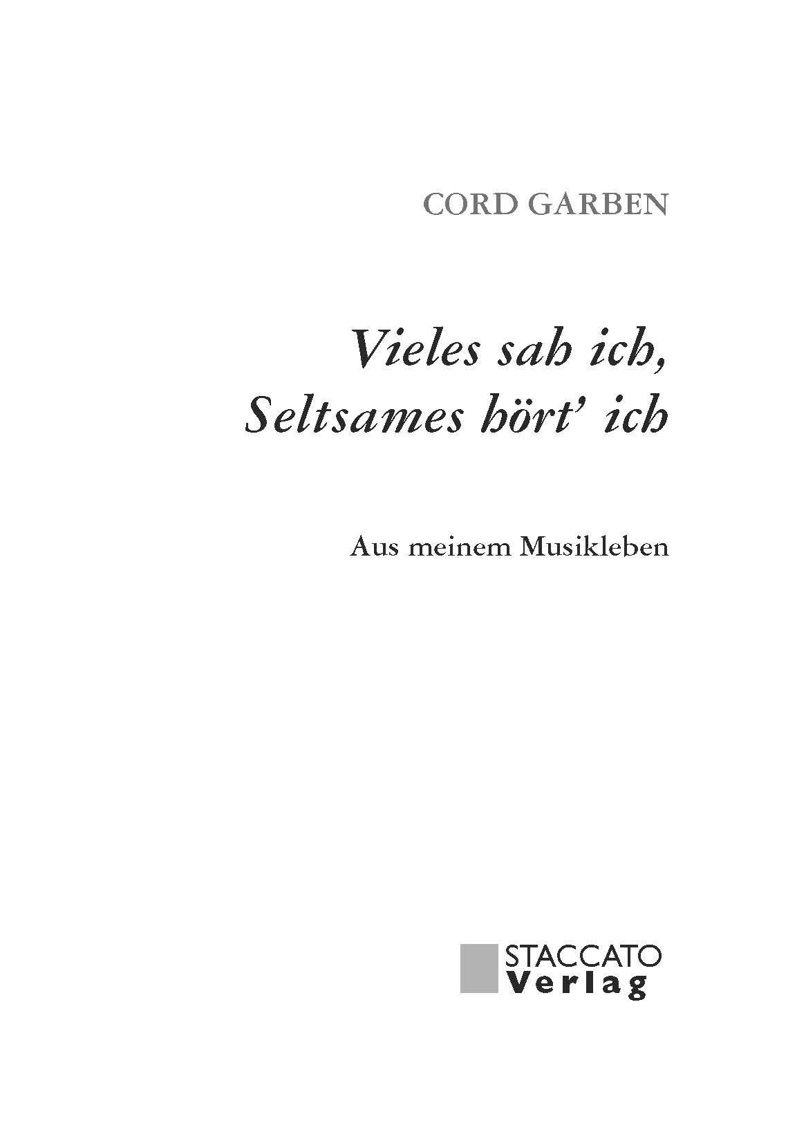 Der Autor erzählt kurzweilig, abwechslungsreich und humorvoll aber auch teils kritisch und ernst – Episoden und Anekdoten aus einem reichen, bunten Leben als Musiker und Produzent. Er blickt auf 50 bewegte Jahre zurück, die ihn schon bald nach dem Studium mit den großen Namen aus der Welt der klassischen Musik zusammenführten, darunter Ikonen wie Dietrich Fischer-Dieskau, Herbert von Karajan und Mstislav Rostropovich. Cord Garbens reicher Erfahrungsschatz findet seinen Niederschlag u. a. in zwei Büchern über Arturo Benedetti Michelangeli wie auch in seinem kritischen Blick auf das Handwerk anderer großer Pianisten (Auf die Finger geschaut im Staccato-Verlag). Besonders die Erlebnisse rund um die Opern-Produktionen bei der Deutschen Grammophon, aber auch seine zahlreichen Lied Tourneen inspirierten den Autor zu einzigartigen Geschichten, die nur schreiben kann, wer beinahe parallel als Musiker auf der Bühne und als Produzent im Studio um das Beste der Musik gerungen hat. Als Zeitzeuge eines halben Jahrhunderts wirft der Autor auch einen kritischen Blick auf das gegenwärtige Musikleben. So thematisiert er die Tendenz der öffentlich-rechtlichen Rundfunkanstalten, die großen Werke der „Klassischen Musik“ mehr und mehr auf unterhaltsame Häppchen zu reduzieren. Humorvoll kommentiert er die gegenwärtige Dirigentenszene, serviert einige Leckerbissen der aktuellen Musikkritik und nimmt sich genüsslich der seiner Ansicht nach veganen „historisch informierten Aufführungspraxis“ der „alten Musik“ an.